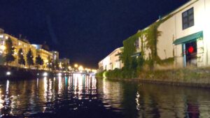 さぁ日が落ちると小樽運河のナイトクルーズへ乗船です。船上からみる小樽はガス灯と街の灯りが水面に映りより一層きれいにみえました。